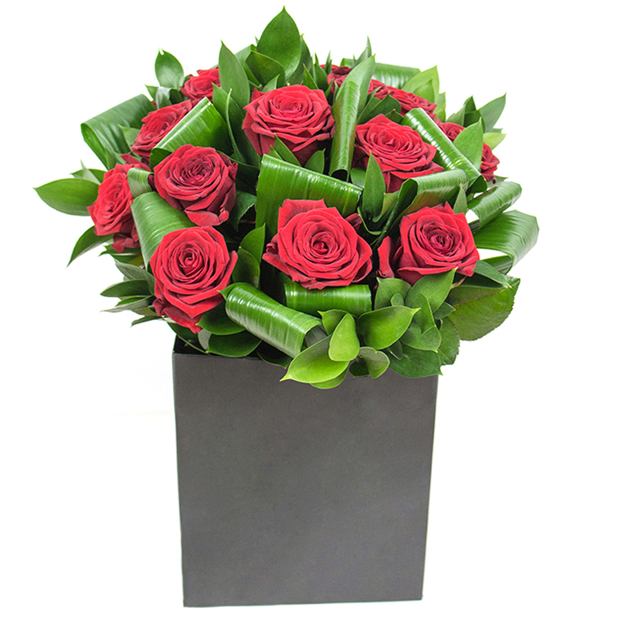 Celebrate timeless romance with INFINITE BEAUTY, a luxurious red rose arrangement handcrafted by Florist Hornsey. This simple yet stylish design pairs premium red roses with sculptural aspidistra leaves and lush ruscus for a modern, elegant look that suits any home or special occasion. Expertly arranged, each stem is selected for quality and freshness, creating a stunning focal point that radiates passion and sophistication.